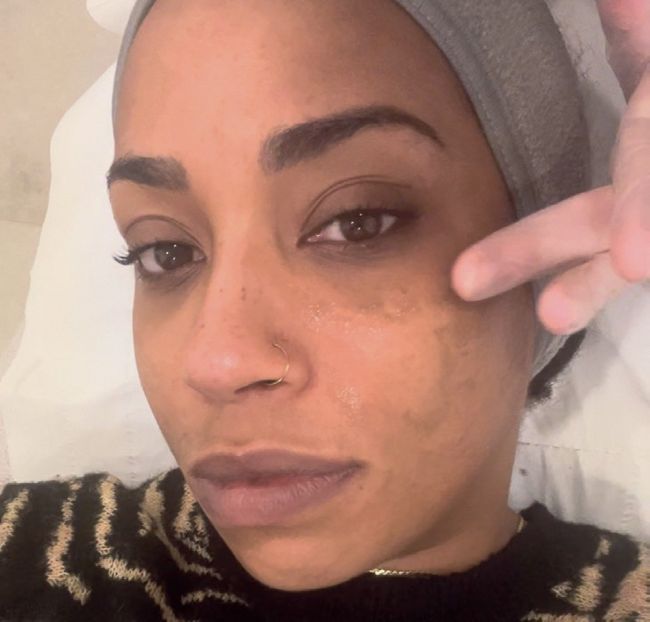The powder was mixed and shaken up with a serum and after a thorough cleanse the spicule solution was massaged gently into my face. The sensation wasn’t painful but felt like sandpaper on mild sunburn.