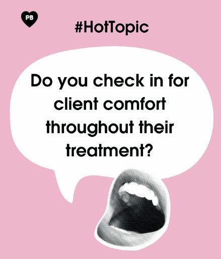 @salonesque “We always check in on our clients, but I find it especially important when the client’s eyes are closed or they have lash moulds or tape on the eye area…this can be verbally or if I haven’t touched the client in a few minutes, I lightly touch the temple before I proceed with anything else.”