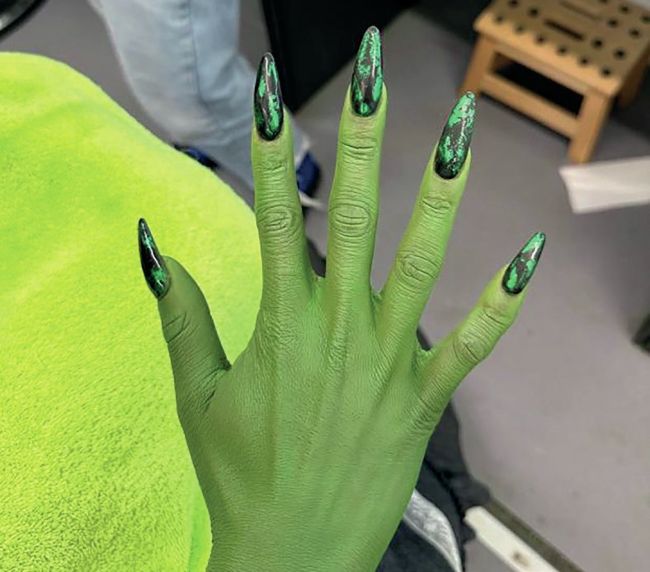 “It was a collaborative process designing the nails and Cynthia had input, too. In the original Wizard of Oz movie, the wicked witch had nails that elevated her costume. When you think ‘witch’, you think green, black and stiletto shapes. We wanted something that would be timeless, something that everyone could recreate at home or in a salon,” continues Osei. “We thought about how we were going to make sure everyone feels a part of Wicked. Like they’ve got a bit of Elphaba.”