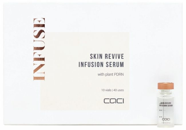 CACI’s new Skin Revive Infusion Serum with Plant PDRN – delivered via CACI’s Infusion Atomiser attachment, a needle-free transdermal delivery system – is designed for sensitised skin in need of barrier repair. An alternative to traditional salmon or trout-based polydeoxyribonucleotides (PDRN), this vegan-friendly plant-based formula is derived from algae and ginseng DNA, but still promises effective skin-regenerating results.