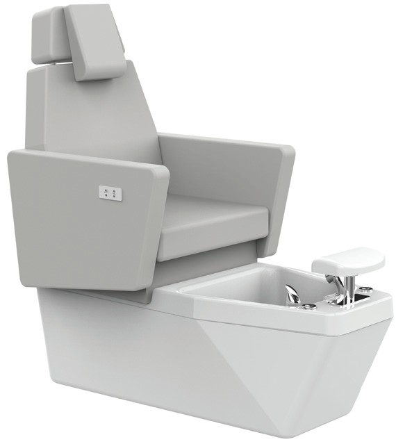 The Agate Pedicure Spa Chair is manufactured in Barcelona. Both the chair itself and the chair’s backrest can be adjusted electronically, while the basin features coloured LED lights and a whirlpool jet with a showerhead and mixer tap. The Agate is a plumbed system which requires a hot and cold feed, and has a built-in basin fan pump, which assists for quick bowl draining between clients. The chair can be made to order in a range of colours.