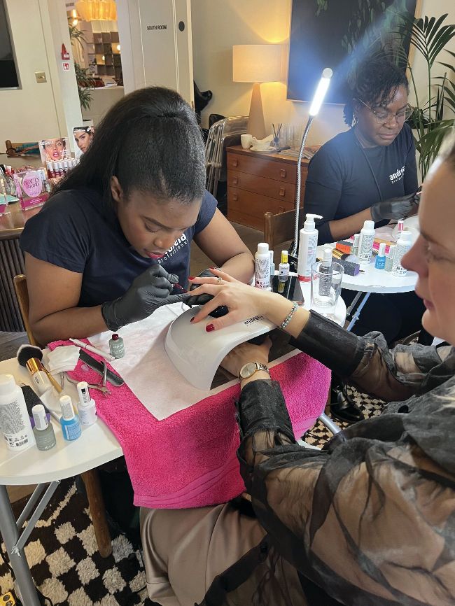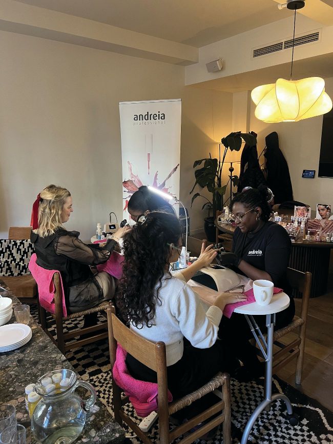 Nail, makeup and haircare brand Andreia Professional hosted key press at a discovery day at London co-working space Soho Works in December. The brand’s UK country manager Paul McLintock, along with the team from PR company Essence, introduced guests, including Professional Beauty editor Eve Oxberry, to the brand’s latest launches over breakfast. They were also treated to gel manicures at the experienced hands of session nail tech Janel Grant. Eve chose a stunning shade from Andreia’s Meowgic cat eye collection – MC1, a magnetic silver glitter with pink shimmers. The visit was rounded off with Andreiabranded cupcakes and goodie bags containing a selection of the brand’s best-sellers.