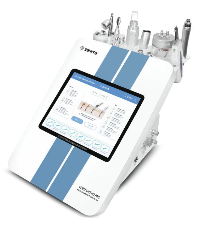 Verstand HD Pro is a multifunctional aesthetic platform designed to support skin health across all ages, from teenage acne-prone skin to preventative and mature concerns. The system combines microcurrent muscle toning, RF skin tightening for collagen stimulation, Dermedrop electroporation for advanced active delivery, ultrasonic peeling for clarity and congestion, and Hydrodiamond technology for deep cleansing, hydration and barrier support.