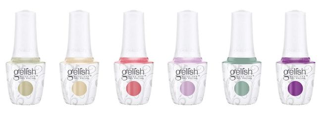 The new Prism Blooms collection is available in Gelish Soak Off Gel Polish, Morgan Taylor Nail Lacquer, and Gelish Xpress Dip N Brush Powders. It features six shades: Catching Some Glaze, an iridescent opal; Sunburst Your Bubble, soft yellow pearl; Mint For Me, light teal; Berrylicious Bliss, light grape; Citrus Halo, coral pink pearl; and Lucidly Lavender, lavender pearl.