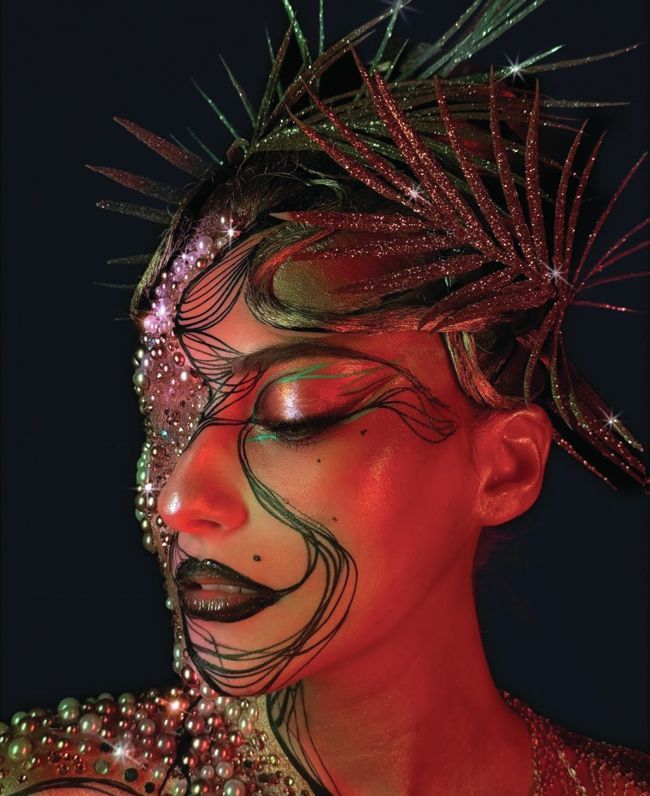 When asked about inspiration, Mac looks beyond social media and trend cycles. “I’ve always gone into contemporary art museums, and look to my family and friends and the untold stories,” he says. “I’ve lived about six different lives.” He describes drawing inspiration from people he meets while teaching internationally, translating their stories into conceptual makeup designs. “You are an alien girl, or from another planet,” he recalls telling a model during a masterclass. “I put that into her character the next day.”